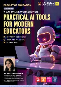 • कलिंगा विश्वविद्यालय, रायपुर में “आधुनिक शिक्षकों के लिए व्यावहारिक एआई उपकरण” विषय पर 7 दिवसीय ऑनलाइन कार्यशाला का सफल समापन