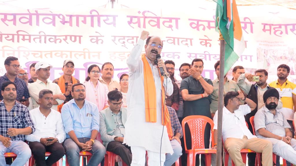 इस अवसर पर भाजपा प्रदेश अध्यक्ष श्री साव ने कर्मचारियों को संबोधित करते हुए कहा कि धूप, गर्मी, ऊमस और बारिश के बावजूद अपने अधिकारों के लिए लड़ रहे कर्मचारियों के हजारों परिवार की चिंता करने के बजाय प्रदेश के मुख्यमंत्री भूपेश बघेल एक खानदान, एक परिवार की सेवा-चाकरी और चिंता कर रहे हैं। श्री साव ने कहा कि कांग्रेस ने अपने पिछले चुनावी घोषणा पत्र में वादा किया था कि सत्ता में आते ही 10 दिन में संविदा कर्मियों का नियमितीकरण किया जाएगा, लेकिन सरकार वादा पूरा करने में टाल-मटोल करती रही, बहानेबाजी करती रही। प्रदेश सरकार ने कर्मचारियों के साथ वादाखिलाफी करके हजारों कर्मचारियों को आंदोलन के लिए बाध्य किया है। प्रदेश सरकार ने हर वर्ग के साथ-साथ कर्मचारियों को भी बार-बार धोखा दिया है। श्री साव ने कहा कि कर्मचारियों के साथ ही पूरे प्रदेश ने अब वादाखिलाफी करने वाली सरकार को सबक सिखाने का निश्चय कर लिया है। श्री साव ने आश्वस्त किया कि लाखो कर्मचारियों का दु:ख-दर्द भाजपा परिवार का दु:ख-दर्द है। प्रदेश के मुख्यमंत्री को छत्तीसगढ़ की तीन करोड़ जनता की कोई फिक्र नहीं है। अब इस प्रदेश सरकार का हिसाब नवम्बर में चुकता करने का मौका कर्मचारियों को मिल रहा है। ऐसी तानाशाह सरकार को उखाड़ फेंकें और आज से लाखो कर्मचारी अपने भविष्य की चिंता छोड़ दे, उनकी चिंता अब भाजपा करेगी। श्री साव ने कहा कि कर्मचारियों के संघर्ष में भाजपा हर कदम पर कर्मचारियों के साथ खड़ी है।