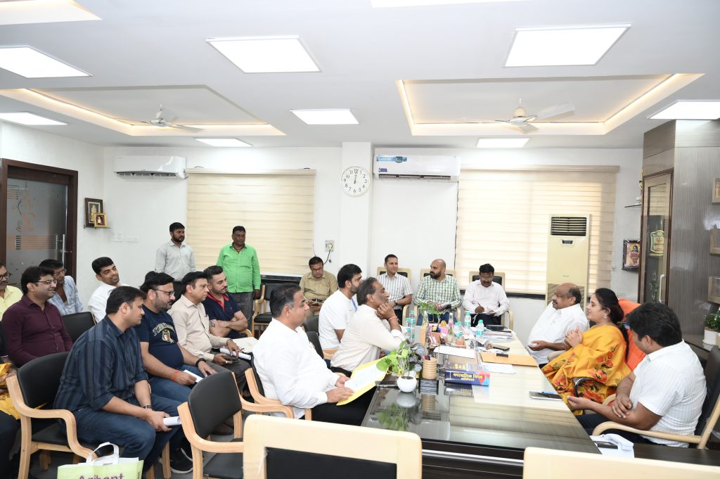रायपुर – आज राजधानी शहर रायपुर के पंडरी कपडा बाजार के संबंधित 19 व्यापारीगण नगर निगम रायपुर मुख्यालय महात्मा गांधी सदन के महापौर कक्ष में आए एवं उन्होने महापौर श्रीमती मीनल चौबे, उत्तर विधायक श्री पुरंदर मिश्रा, आयुक्त श्री विश्वदीप से चर्चा कर दस्तावेज प्रस्तुत करते हुए सीलबंदी कार्यवाही के प्रकरण में परीक्षण करवाने का आग्रह किया। इस दौरान महापौर कक्ष में नगर निवेशक श्री आभास मिश्रा, जोन 2 जोन कमिश्नर डॉ. आर.के. डोंगरे, कार्यपालन अभियंता श्री आशुतोष सिंह की उपस्थिति रही।