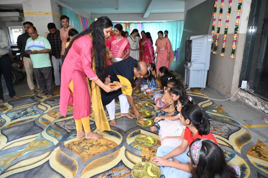 रायपुर । नवरात्रि के अष्टमी को कचना स्थित सिटी ऑफ ड्रीम कॉलोनी में आयोजित कन्या भोज कार्यक्रम में रायपुर विधायक पुरन्दर मिश्रा सम्मिलित हुए । विधायक श्री मिश्रा ने विधि विधान से कन्याओं का पूजन कर उन्हें अपने हाथो से भोज परोसा और प्रणाम किया। विधायक ने कहा यहां 51 कन्याओं का भोज कराया गया हमारे सनातन धर्म में कन्याओं को देवी का रूप माना गया है जिसके कारण पूरे विधि विधान से हम नवरात्रि में हम कन्याओं को भोज कराते जिससे माता रानी प्रसन्न होती है। विधायक पुरन्दर मिश्रा ने कहा कि नवरात्रि के अंतिम दिन कुंआरी कन्या पूजन का विशेष महत्व होता है। ये नौ कन्याएं मां का नौ स्वरूप मानी जाती है, इस दिन एक लांगुर की भी पूजा होती है, जिसे भैरव स्वरूप माना जाता है। नौ दिन व्रत रखने वाले भक्त कन्याओं को भोजन कराने के बाद ही अपना व्रत खोलते हैं।