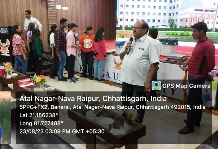 23 अगस्त, 2023 को कलिंगा विश्वविद्यालय ने छत्तीसगढ़ निर्वाचन आयोग के सहयोग से विश्वविद्यालय परिसर में चुनाव के दौरान इलेक्ट्रॉनिक वोटिंग मशीन (ईवीएम) का उपयोग करने के बारे में छात्रों को शिक्षित करने के लिए एक जागरूकता और प्रशिक्षण सत्र का सफलतापूर्वक आयोजन किया।