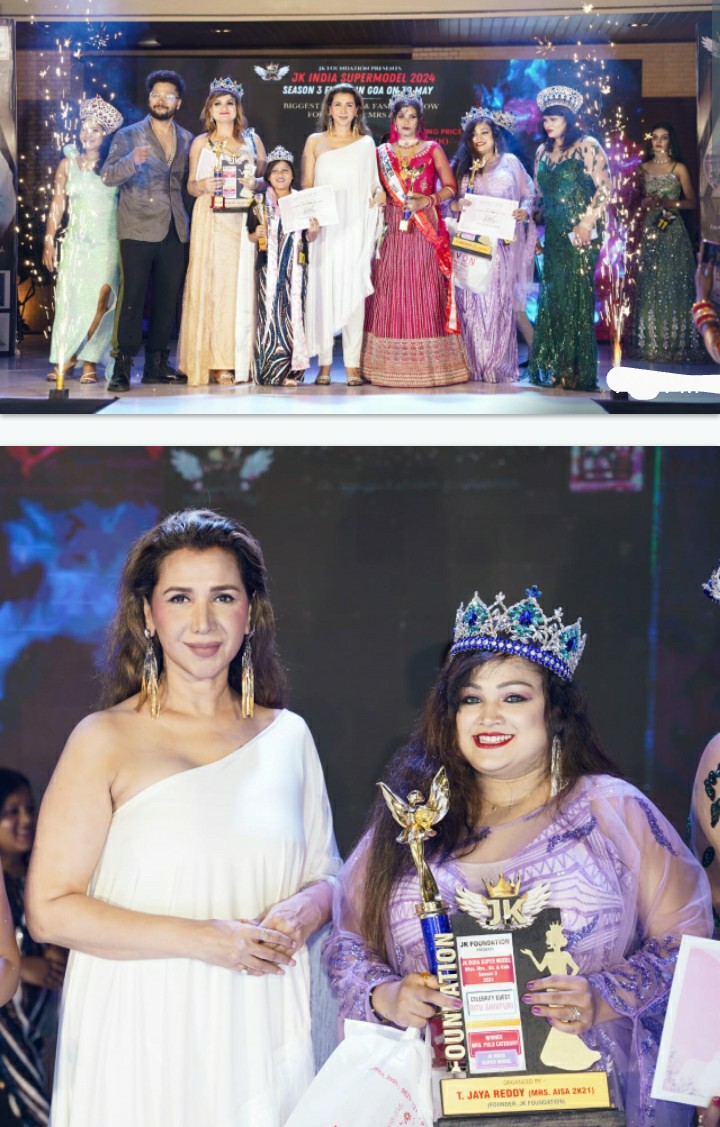 जे के सुपर मॉडल सीजन 3 मिस, मिसेज, मिस्टर और किड्स का आयोजन नॉर्थ गोवा होटल नीलम द ग्रैंड में जे के फाउंडेशन की ऑनर टी जया रेड्डी द्धारा 30 मई को शानदार आयोजन के साथ किया गया जिसमें अभिनेत्री रितु शिवपुरी जो की सेलिब्रिटी अतिथि थी।इवेंट का कॉर्डिनेट श्री मनोहर कृष्णानी ने किया! कार्यक्रम के सह प्रायोजक वेदिका टाइल्स के मालिक श्री सतीश अग्रवाल, इसके अलावा जूरी में सोनम श्रीवास्तव, ममता प्रसाद, वीवी गांधीवी, सेलिब्रिटी host (एंकर) गायक लकी’ तरार , वी आई पी अतिथि प्रीती त्रिपाठी, नेहा पटेल, सविता सिंह, सौरभ पांडे,मनोहर कृष्णानी, गेस्ट ऑफ़ ऑनर कांति मौर्य,मीनू बिस्ट, कोमल सावलानी थी! कार्यक्रम की शुरुवात दीप प्रज्वलित कर किया गया ।