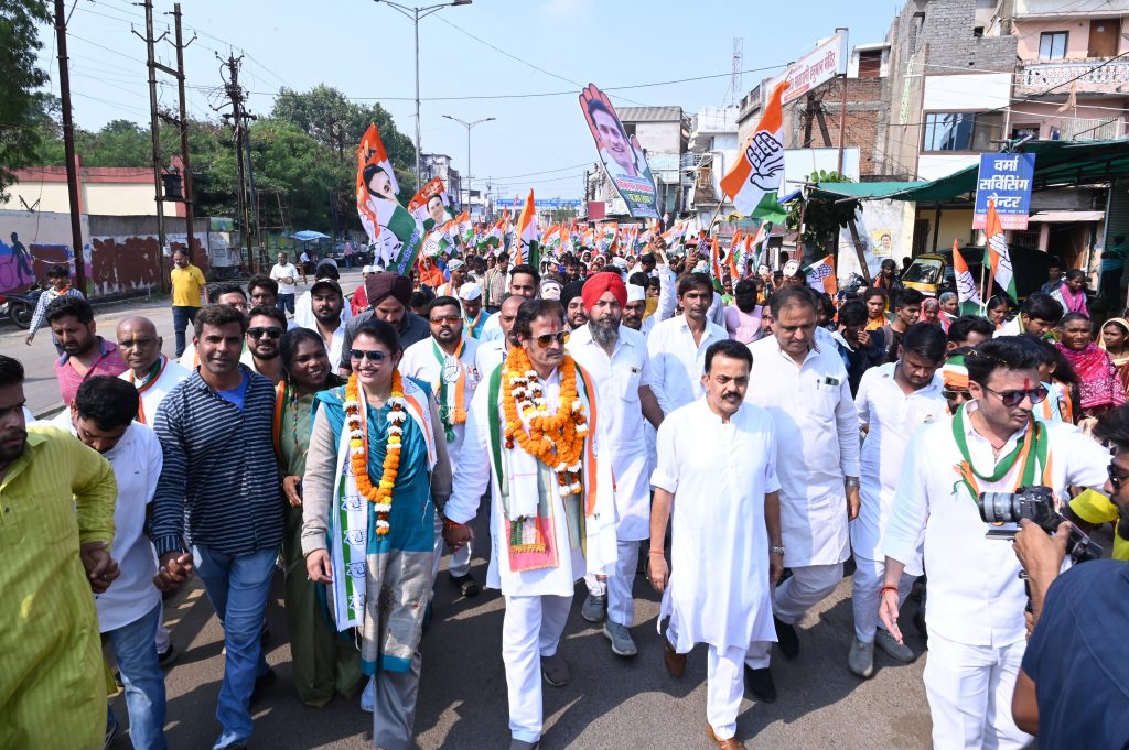 इस नामांकन रैली का माता बहनों के द्वारा जगह जगह आरती और तिलक लगाकर पुष्प वर्षा करते हुए भव्य स्वागत किया।