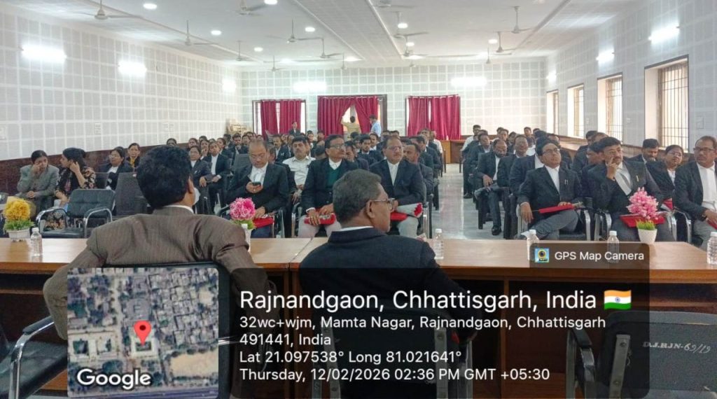 कलिंगा विश्वविद्यालय, रायपुर द्वारा 12 फरवरी 2026 को जिला न्यायालय, राजनांदगांव में “साइबर लॉ एवं डिजिटल साक्ष्य की ग्राह्यता” विषय पर एक उच्च-प्रभावी संगोष्ठी का आयोजन किया गया। इस शैक्षणिक–न्यायिक पहल में 160 से अधिक अधिवक्ताओं की सक्रिय सहभागिता रही तथा 16 माननीय न्यायाधीशों की गरिमामयी उपस्थिति ने इसे ज्ञान-विनिमय का एक महत्वपूर्ण मंच बना दिया