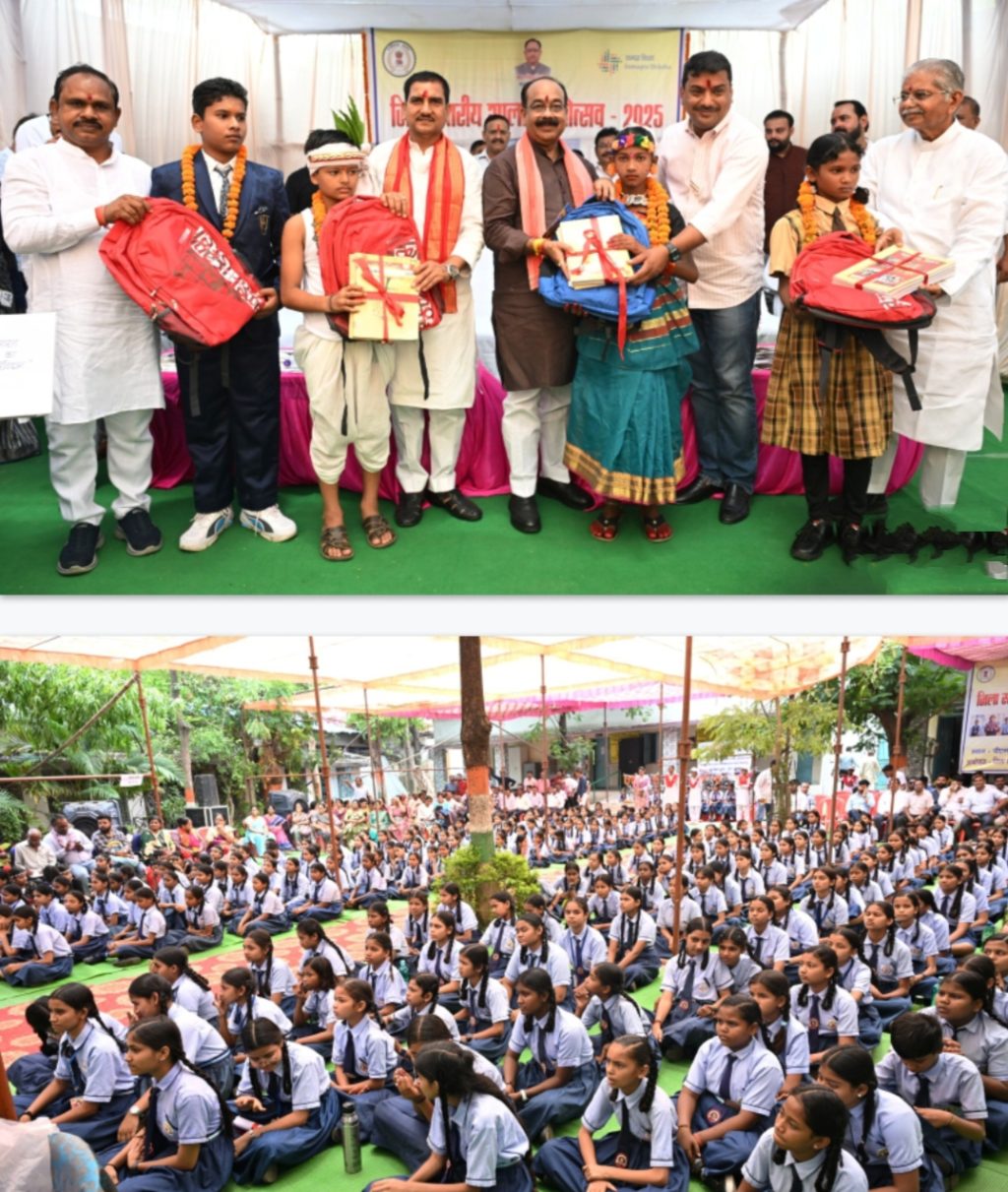 रायपुर. 16 जून 2025. केन्द्रीय आवासन और शहरी कार्य राज्य मंत्री श्री तोखन साहू और उप मुख्यमंत्री श्री अरुण साव आज बिलासपुर के सरकण्डा स्थित पीएमश्री सेजेस कन्या शाला में आयोजित जिला स्तरीय शाला प्रवेशोत्सव में शामिल हुए। शाला प्रवेशोत्सव उत्साह और उल्लास के साथ मनाया गया। उप मुख्यमंत्री तथा बिलासपुर जिले के प्रभारी मंत्री श्री अरुण साव ने स्कूल में विभिन्न कार्यों के लिए 20 लाख रुपए देने की घोषणा की।