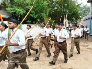 रायपुर : राष्ट्रीय स्वयंसेवक संघ, रायपुर महानगर के अंतर्गत विजयादशमी के अवसर पर सभी नगरों में गत 25 सितबर से बस्तीश: चल रहे उत्सव और संचलन का कार्यक्रम पूरे उमंग और जोश के साथ चल रहा है। आगामी 15 अक्टूबर तक चलनेवाले उत्सव कार्यक्रम के 10 वें दिन 37 स्थान पर उत्साह और जोश से लबरेज स्वयंसेवकों ने पूरे शान के साथ पथ संचलन निकाला। रायपुर शहर में कई बस्तियों में यह कार्यक्रम प्रातः 7 बजे से तो कई जगह संचलन रात्रि 8 बजे तक चला। इस दौरान स्वयंसेवकों का उत्साह जहाँ चरम पर था तो वहीँ वक्ताओं में गर्व और संयम का संगम देखा जा सकता था।